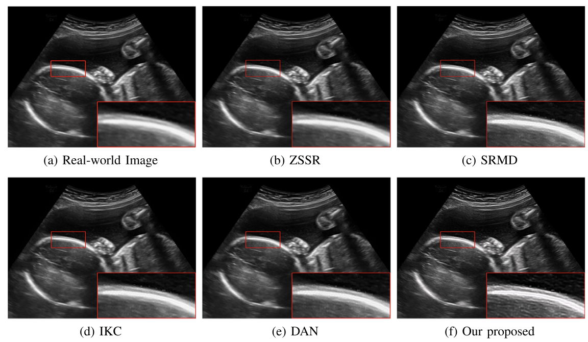 (真实场景超声影像盲超分效果对比图)