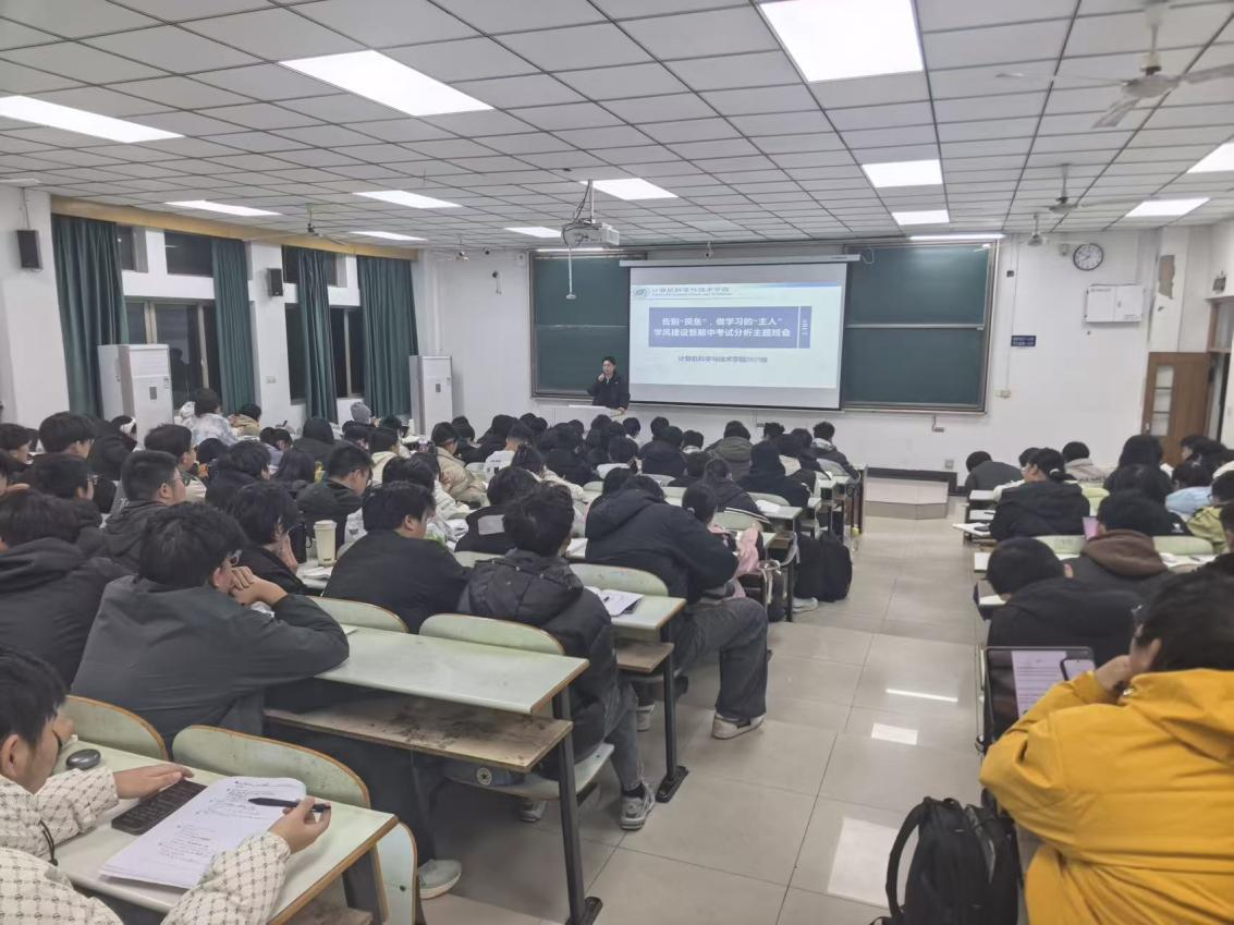为进一步强化学风建设,引导学生树立正确的学习观,计算机科学与技术学院于12月16日在教三南201召开了面向2025级全体新生的“告别‘摸鱼’,做学习主人”期中学风建设会,会议由新生辅导员徐康主持,2025级全体辅导员及新生共同参会。
