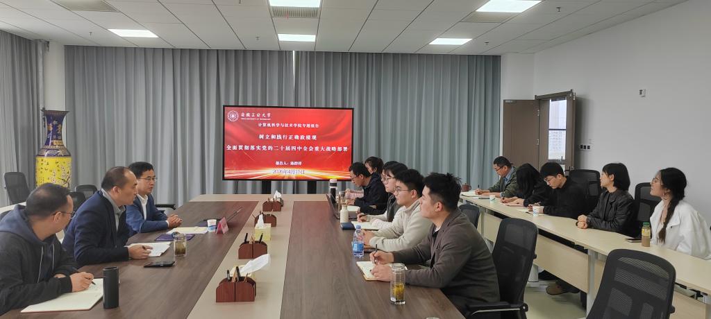 4月15日下午,计算机科学与技术学院在先进技术研究中心513会议室召开专题会议,邀请中共马鞍山市委党校陈群祥副教授作了题为“树立和践行正确政绩观 全面贯彻落实党的二十届四中全会重大战略部署”专题辅导报告。报告会由学院党委书记夏玉钦主持,学院科级干部及各党支部书记聆听了宣讲报告。