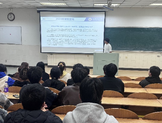 新学期伊始,宣传大使深入各年级开展“资助政策宣讲会”,通过“申请流程图”等可视化工具,系统地讲解国家助学金、奖学金、助学贷款、困难补助、入伍教育资助、勤工俭学等申请条件、流程和标准,并进行现场答疑。同时,学院开展“资助育人,筑梦未来”主题班会,资助政策知识竞赛、讨论等环节激发了同学们的兴趣,加深了同学们对资助政策的理解。