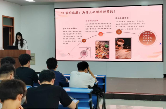 大学生宣讲团成员胡婧围绕“节约之基:为什么必须厉行节约?”展开分享,并结合“光盘行动”和传统美德,呼吁全体同学从自身做起,珍惜每一粒粮食、每一度电、每一张纸。活动后,同学们纷纷在便利贴上写下自己的节约小妙招,互相学习、互相警示,彼此交流节约心得,表示今后将减少餐饮浪费、合理使用学习资源,并带动身边人共同践行节约。