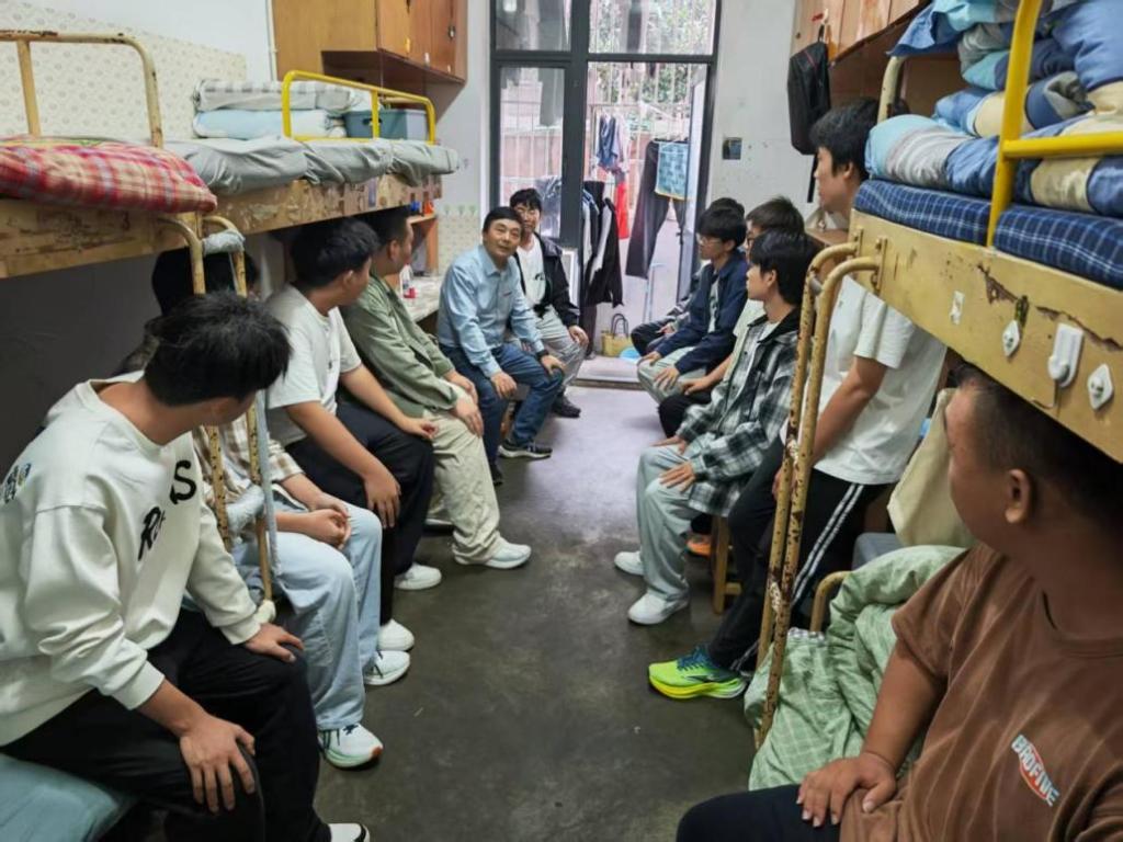 走访中,黄国才对新生的到来表示热烈欢迎,细致询问了新生家乡背景和军训感受,围绕日常学习、生活起居、理想规划等话题展开深入交流。黄国才结合自身教育经验与人生感悟,向同学们提出三点建议,一是要珍惜大学时光,勤奋学习,不断提升自我,为大学四年制定明确的目标规划;二是广泛阅读,拓展知识视野,促进全面发展;三是关注心理健康,保持积极乐观的心态,勇于面对挑战。同学们纷纷表示,此次交流让他们感受到学校的温暖与关怀,也更加坚定了努力学习的信心。