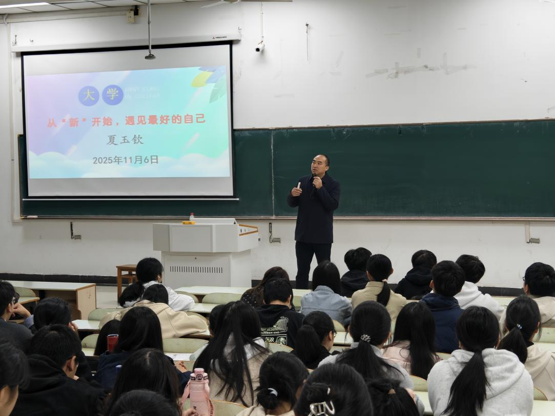 2025年11月6日下午,计算机科学与技术学院2025级本科生新生开学第一课在教三南203举行。学院党委书记夏玉钦以《从“新”开始,遇见最好的自己》为主题,为同学们带来了一堂生动深刻、催人奋进的第一课。